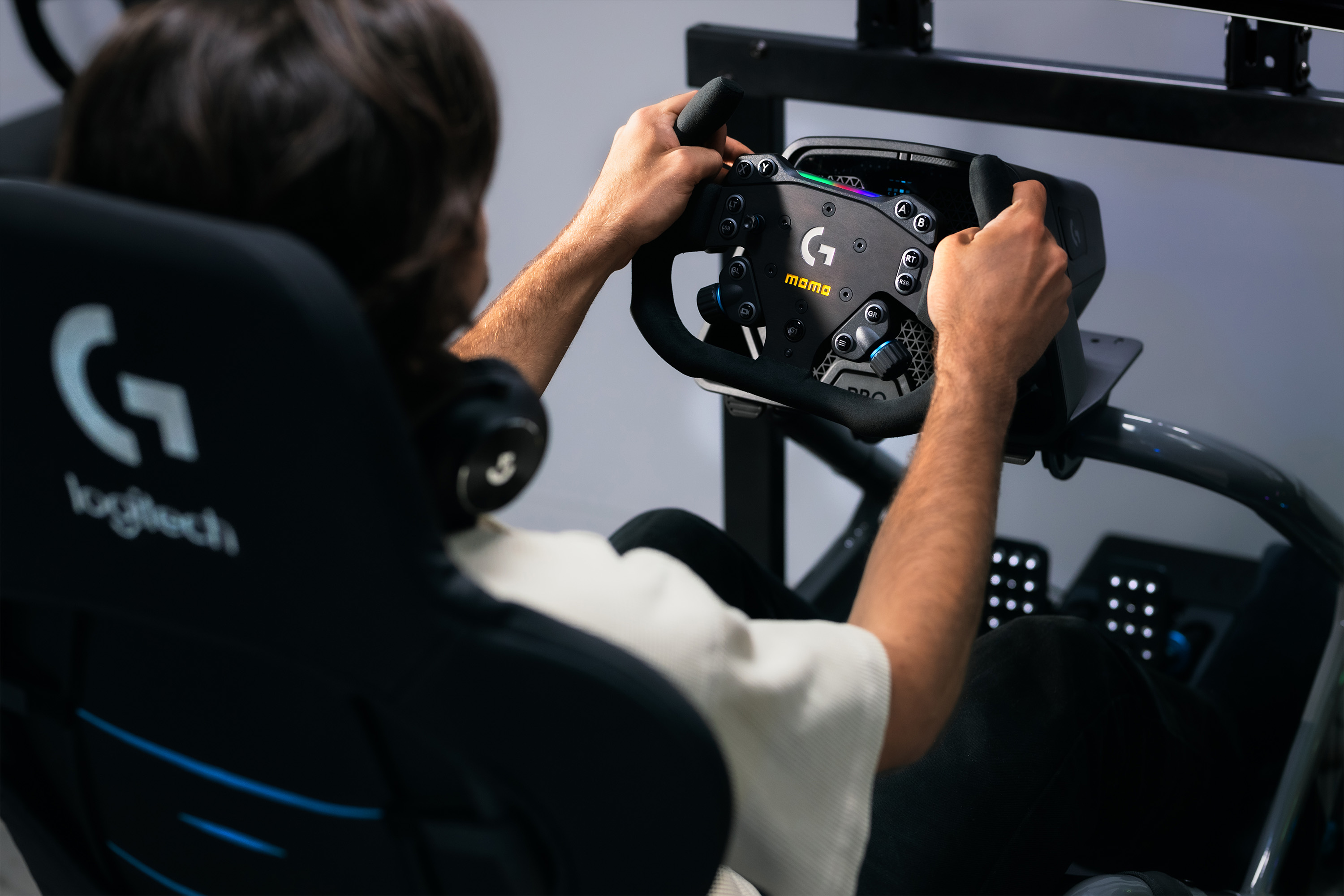 MOMO × Logitech G Lenkrad MIKROFASER SIM GT Racer 290mm BLACK(Kompatibilität mit dem Logitech G RS Wheel Hub)LINK ZUM HUBLINK ZUR BASISModel : SIM GT RACERGröße: 290mmFarbe: Schwarz