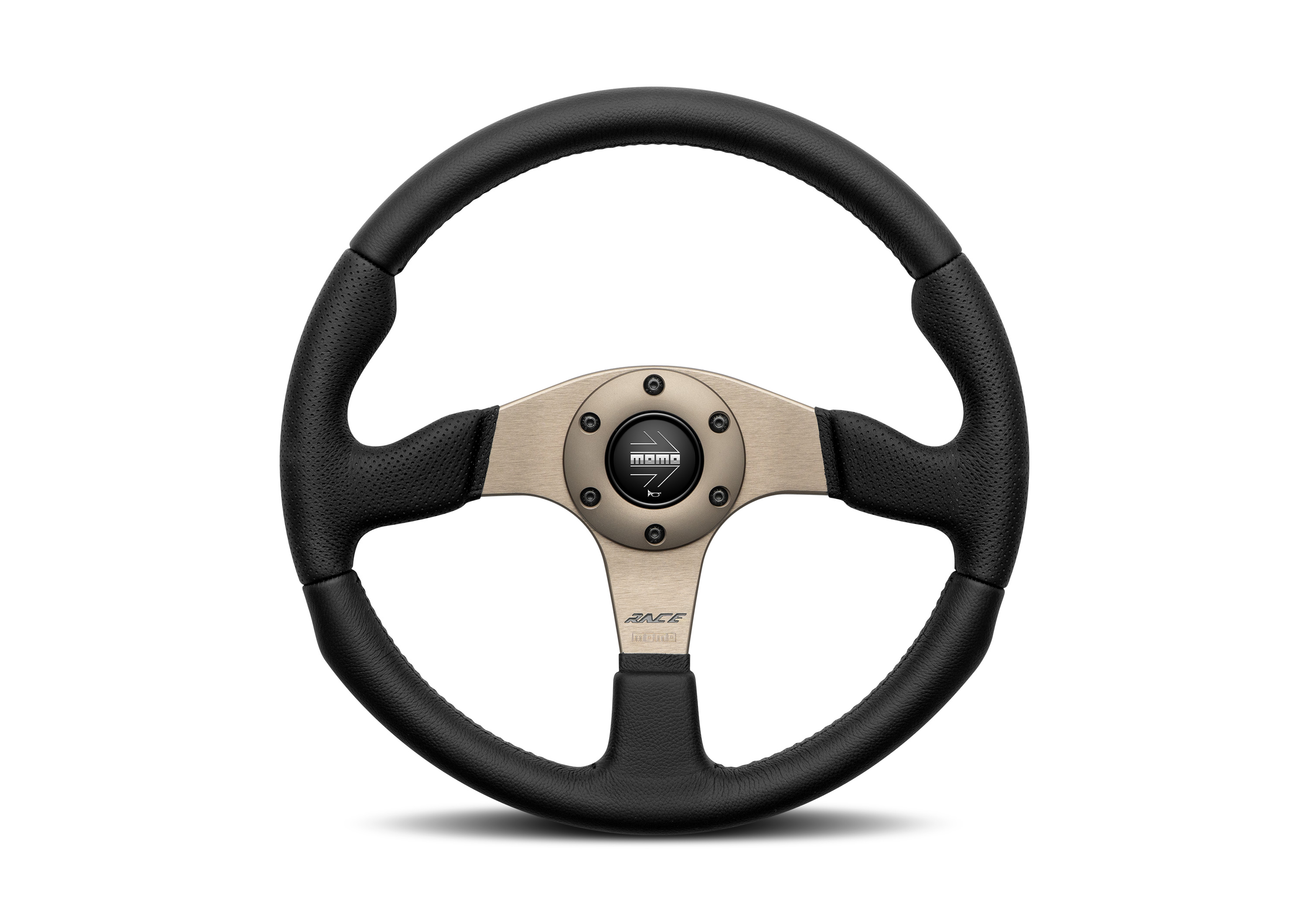 Das RACE 2.0 vereint Präzision und Stil mit dem CNC-gefrästen und handemaillierten „RACE“-Logo. Erhältlich in den Durchmessern 320 mm und 350 mm. Es verfügt außerdem über: schwarze Parallelnähte im oberen und unteren Griffbereich eloxierte anthrazitfarbene Aluminiumspeichen und Zentralring