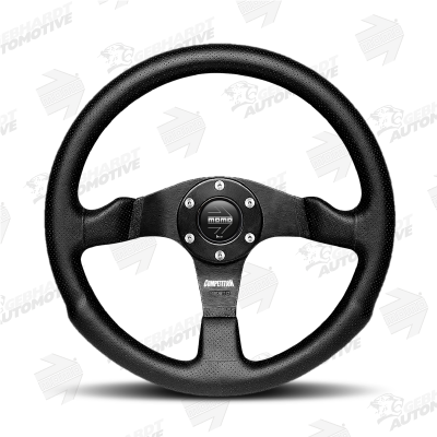 Das MOMO Sportlenkrad Competition 35 mit NFC-Modul aus schwarzem gelochten Leder mit großem Griff. Schwarze Speichen mit flachem Ring. Für den Einbau ist eine Nabe von Momo erforderlich. TÜV Homologation / KBA vorhanden Technische Daten