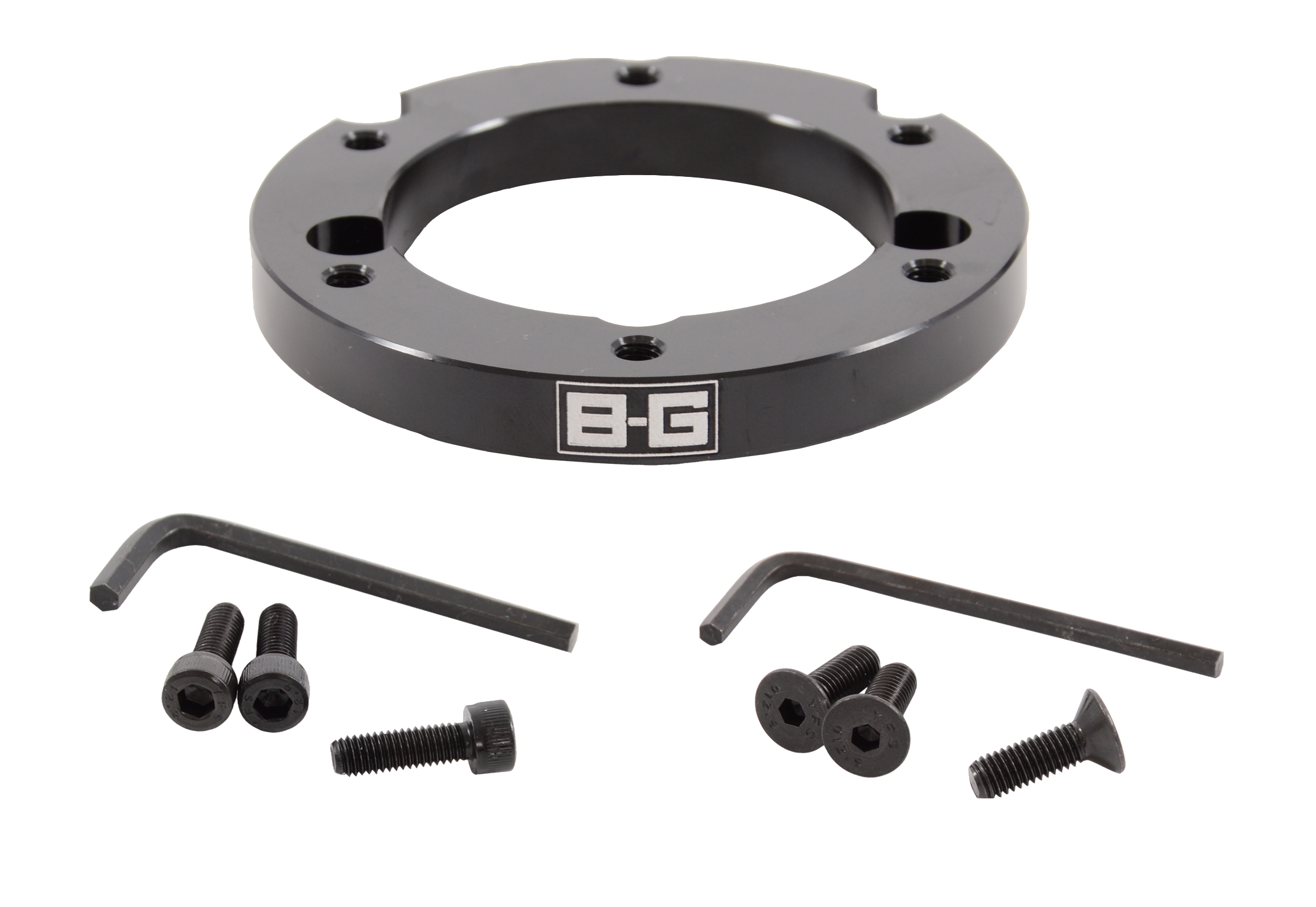 B-G Steering Wheel Spacers are produced from high quality aluminium with an elegant black anodised finish and laser etched B-G logo, and are simple to fit using the fixing screws provided.